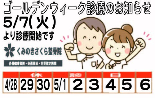 GW診療のお知らせ|骨折治療なら大阪府大阪狭山市にある「くみのきさくら整骨院」