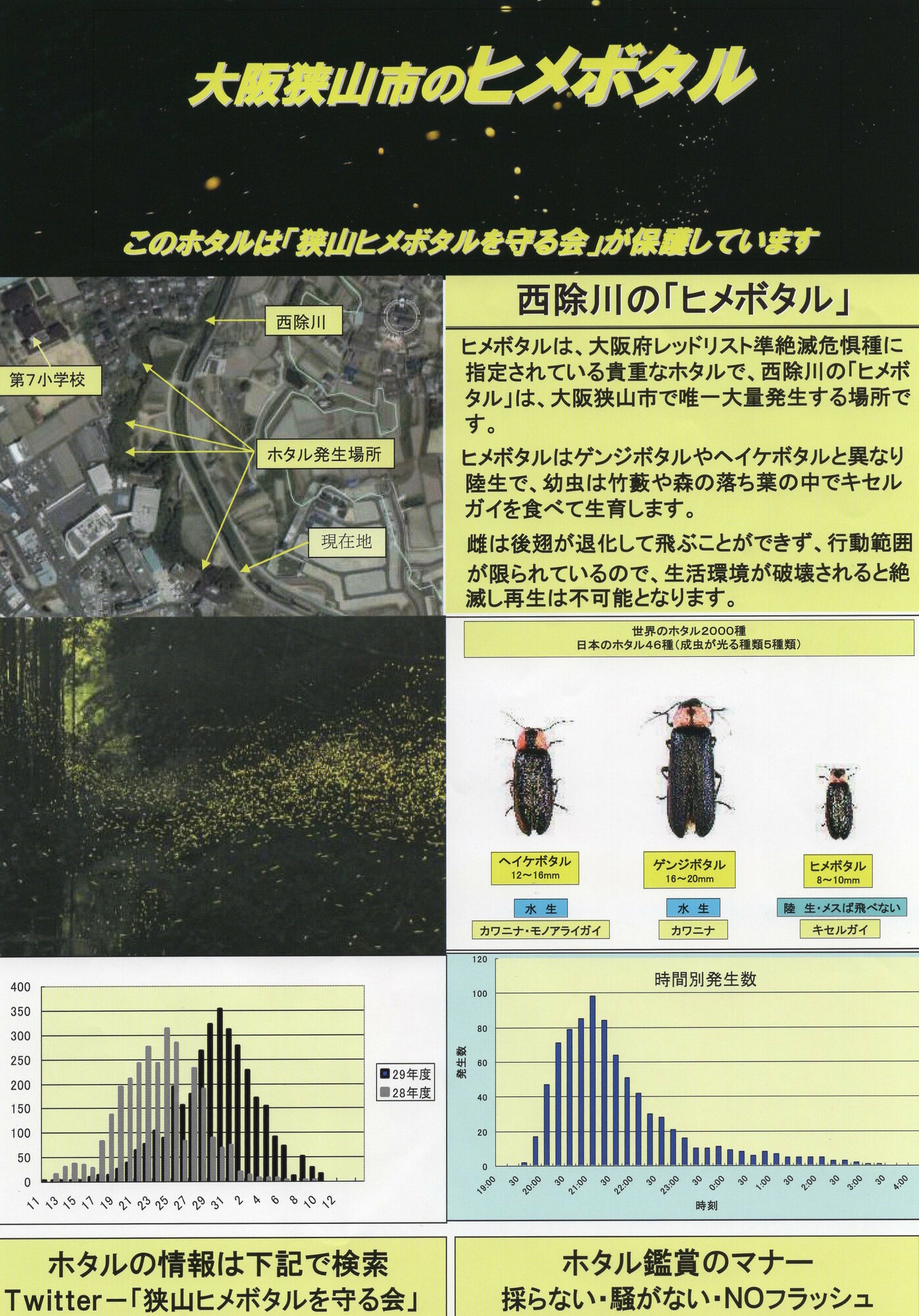 大阪狭山市に流れる西除川ではヒメボタルが毎年鑑賞できます
